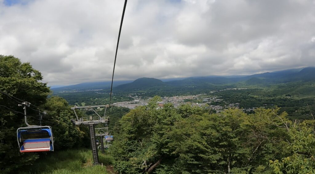 スキーで使用されるリフトに乗って標高1,155mまで登っていきます!